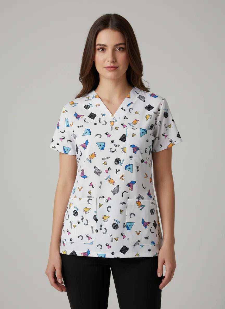 Válasszon egy színes női orvosi blúzt, Prisma mintával, elasztánnal, amely stílusosan kiegészíti kórházi vagy irodai egyenruháját. Ennek a blúznak a színei élénkek, és friss levegőt hoznak orvosi öltönyébe.