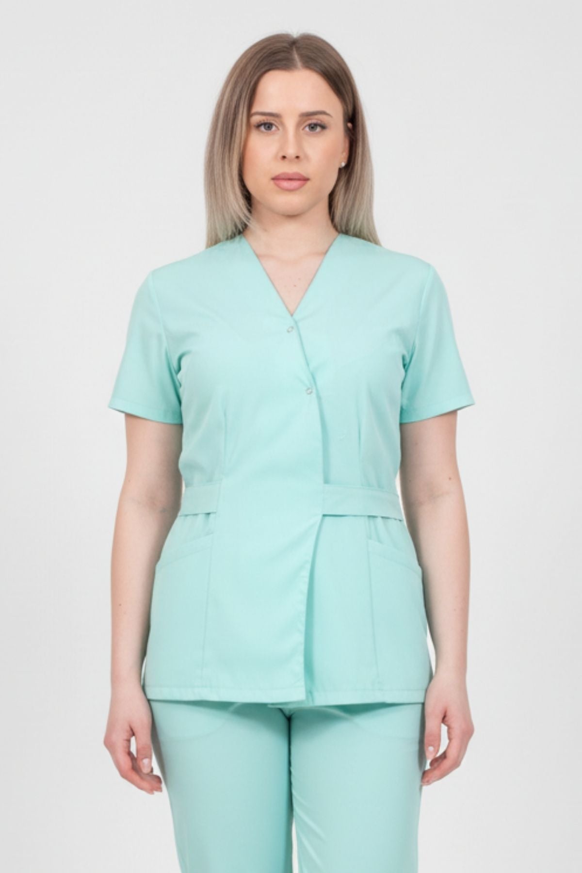 Bluza medicala kimono este la nivel global unul din cele mai populare tipuri de bluze medicale, un statement local, cat si international. Medicii din intreaga lume au ales acest bluza medicala unicolor, intr-o nuanta superba de verde menta.