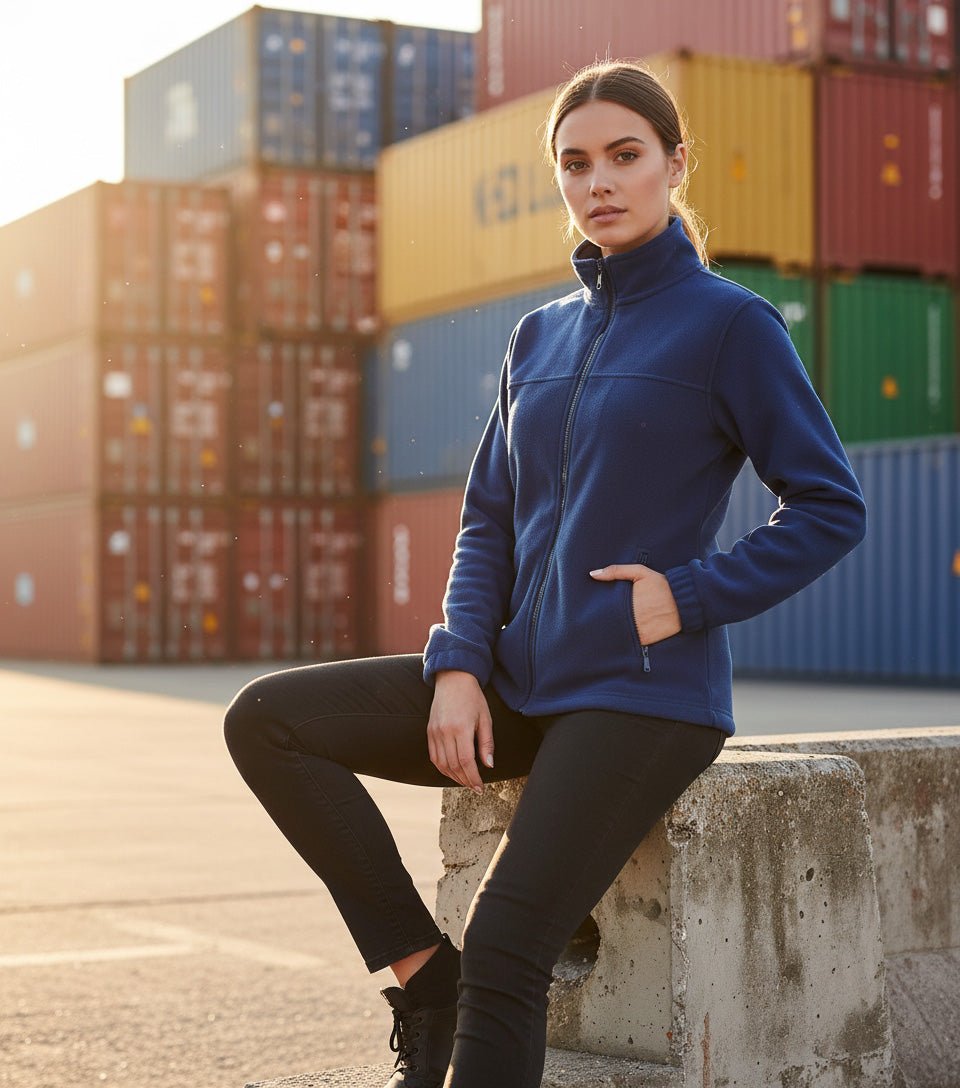 Jachetă polar pentru damă, confecționată din 100% poliester de înaltă calitate (280 g/m²) cu tratament anti-scămoșare pentru o durabilitate excelentă. Materialul moale și izolant oferă confort termic sporit, ideal pentru zilele reci. Croială cambrată ce evidențiază silueta, fermoar modelat pe toată lungimea și buzunare laterale practice cu fermoar. Tivul inferior reglabil cu șnur elastic și manșetele cu bandă elastică asigură o potrivire perfectă. Ideală pentru activități outdoor, muncă sau ținute casual.